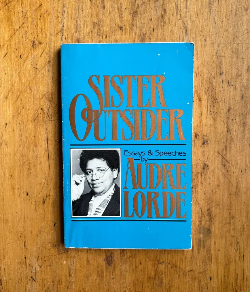 EH: Audre Lorde continues to give me words for things I struggle to frame and express. Even decades after reading her for the first time, I find new things to love when I page through Sister Outsider.